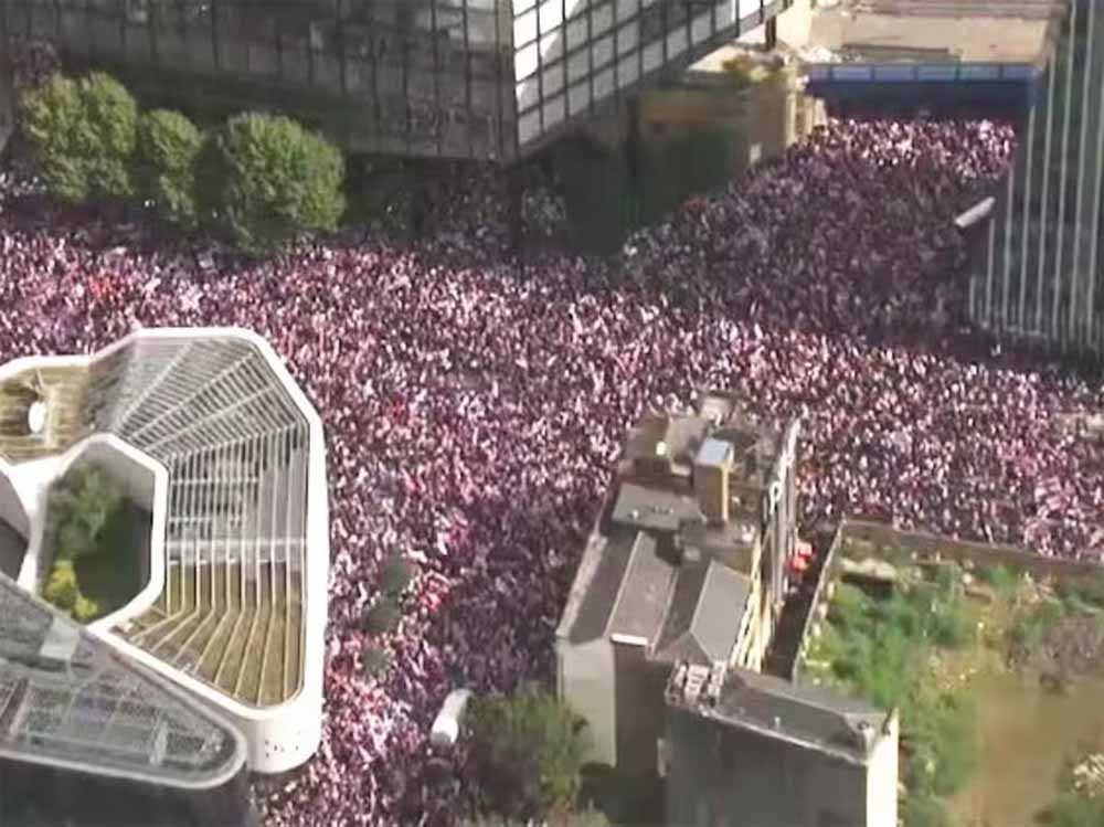 ब्रिटेन की राजधानी लंदन में शनिवार को एक लाख से अधिक लोग सड़कों पर उतर आए। हालिया इतिहास का यह सबसे बड़ा दक्षिणपंथी संगठनों का प्रदर्शन है। एंटी इमिग्रेशन कार्यकर्ता टॉमी रॉबिन्सन के नेतृत्व में करीब 1.10 लाख प्रदर्शनकारी सड़कों पर उतरे। इस दौरान पुलिस अधिकारियों पर हमले की भी खबरें सामने आईं। यह रैली यूनाइट द किंगडम मार्च के नाम से आयोजित की गई थी। इसके जवाब में स्टैंड अप टू रेसिज्म नामक काउंटर-प्रदर्शन भी हुआ, जिसमें लगभग 5,000 लोगों ने भाग लिया।