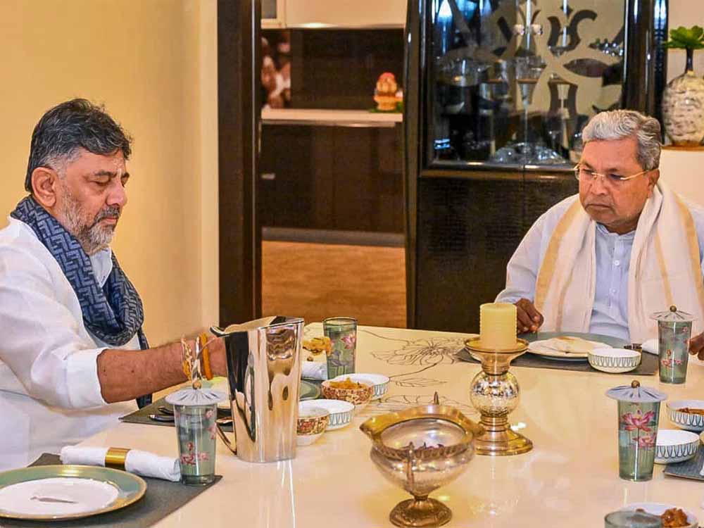 इससे पहले सिद्धारमैया यहां उपमुख्यमंत्री के सदाशिवनगर स्थित आवास पर पहुंचे, जहां शिवकुमार और उनके भाई तथा पूर्व कांग्रेस सांसद डी के सुरेश ने उनका स्वागत किया। हालांकि, इसे एक सौहार्द यात्रा के रूप में पेश किया जा रहा है क्योंकि तीन दिन पहले शिवकुमार इसी तरह नाश्ते के लिए मुख्यमंत्री के आधिकारिक आवास पर गए थे। शिवकुमार ने सोमवार को कहा कि वह और मुख्यमंत्री दोनों एक टीम के रूप में मिलकर काम करते रहेंगे। उपमुख्यमंत्री ने कहा कि उन्होंने सिद्धारमैया को नाश्ते पर आमंत्रित किया है ताकि कर्नाटक से किए गए वादों को पूरा करने के लिए सामूहिक प्रयासों पर चर्चा की जा सके।