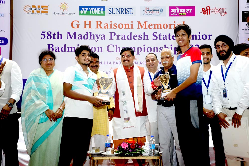 मुख्यमंत्री डॉ. यादव ने बैडमिंटन चैंपियनशिप के विजेताओं और उपविजेताओं को पुरस्कार वितरण किये। चैंपियनशिप के फाइनल में जीते खिलाड़ी मिक्स्ड डबल अंडर 17 कन्हैया शर्मा, कृतिका पाठक, मिक्स्ड डबल्स अंडर 19 ओम पटेल, कीर्ति तिवारी, बॉयज सिंगल अंडर 17 मेदांश शर्मा, बॉयज सिंगल अंडर 19 नैवेद्य तोंडे, गर्ल्स सिंगल अंडर 17 नित्या जादौन, बॉयज डबल अंडर 19 देव कुमावत, अंगद मुछाल, गर्ल्स डबल अंडर 19 आस्था शर्मा, कीर्ति तिवारी, गर्ल्स सिंगल अंडर 19 माही पवार, बॉयज डबल्स अंडर 17 शौर्य मिश्रा, अथर्व सक्सेना, गर्ल्स डबल अंडर 17 नित्या जादौन, नाविका सोमानी को ट्राफी प्रदान की गई।