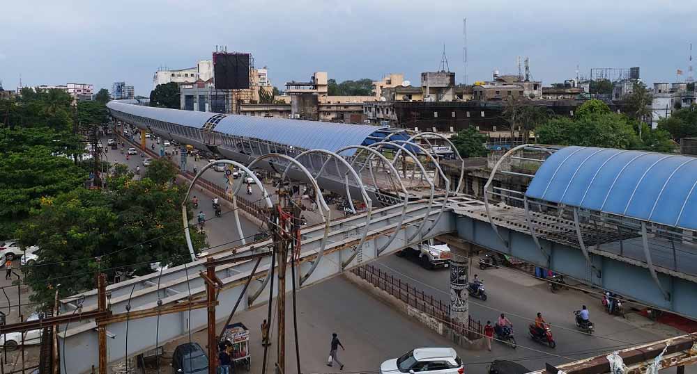 लंबे समय से निर्माण कार्य अधूरा होने तथा देखरेख के अभाव में स्काईवॉक का ढांचा जर्जर होने लगा है. आशंका जताई जा रही है कि लोहे के गर्डर सहित कुछ अन्य निर्माण सामग्रियां खराब हो रही हैं. इसे देखते हुए पहले स्काईवॉक के स्ट्रक्चर का परीक्षण किया जा रहा है. मुख्य अभियंता द्वारा गठित समिति द्वारा पिछले स्काईवॉक का स्थल निरीक्षण किया जा चुका है. प्रतिवेदन में स्ट्रक्चर के सभी भागों में निर्माणाधीन स्ट्रक्चर का स्टील/नट बोल्ट इत्यादि की स्थिति संतोषप्रद बताई गई है. वेल्डिंग वाले स्थानों पर खुले वातावरण में रहने के कारण जंग लगना प्रारंभ हो गया है.