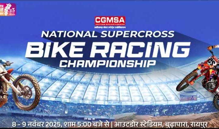 रायपुर छत्तीसगढ़ मोटरस्पोर्ट्स एसोसिएशन द्वारा राजधानी के बूढ़ापारा स्थित आउटडोर स्टेडियम में नेशनल सुपरक्रॉस बाइक रेसिंग प्रतियोगिता का आयोजन 8...