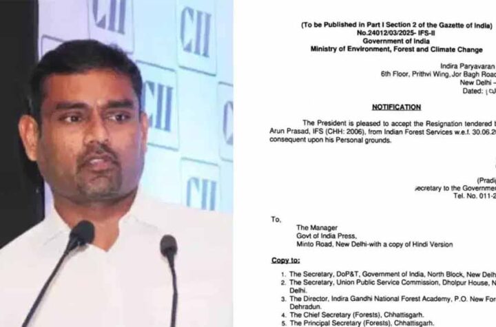 रायपुर केंद्र सरकार ने 2006 बैच के IFS अधिकारी अरुण प्रसाद के इस्तीफे को मंजूरी दे दी है. भारत सरकार...