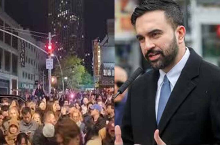 न्यूयॉर्क. अमेरिका के न्यूयॉर्क शहर में एक विरोध प्रदर्शन के दौरान "हम हमास का समर्थन करते हैं" के नारों ने...