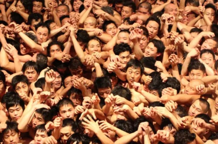 टोक्यो पसीनों से लथपथ हजारों की संख्या में पुरुष बिना कपड़ों के एक खास त्योहार मनाने के लिए मंदिर में...