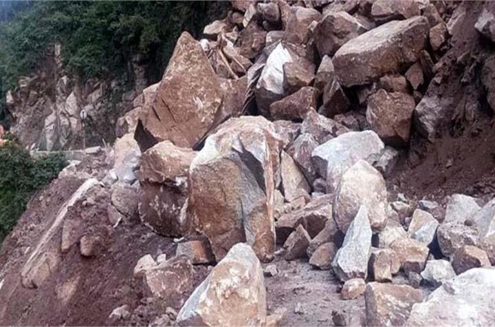 मंडी मंडी से पंडोह के बीच बीती बरसात के दौरान 6 मील के पास हुए लैंडस्लाइड के कारण गिरे मलबे...