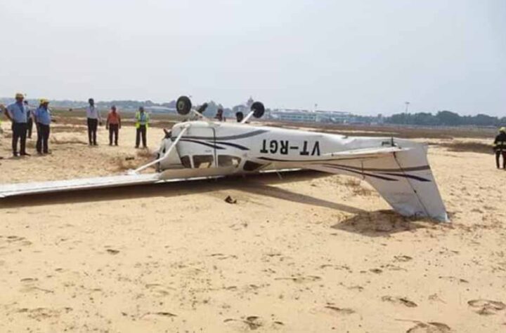 बंगलूरू कर्नाटक के विजयपुरा जिले के बालेश्वर तालुक के मंगलुरु गांव में रविवार दोपहर एक प्राइवेट मिनी विमान खुले मैदान...