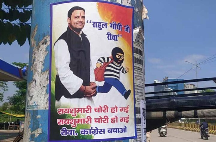 रीवा कांग्रेस नेता राहुल गांधी द्वारा लगाए जा रहे वोट चोरी के आरोपों के बाद रीवा में लगे उनके पोस्टरों...