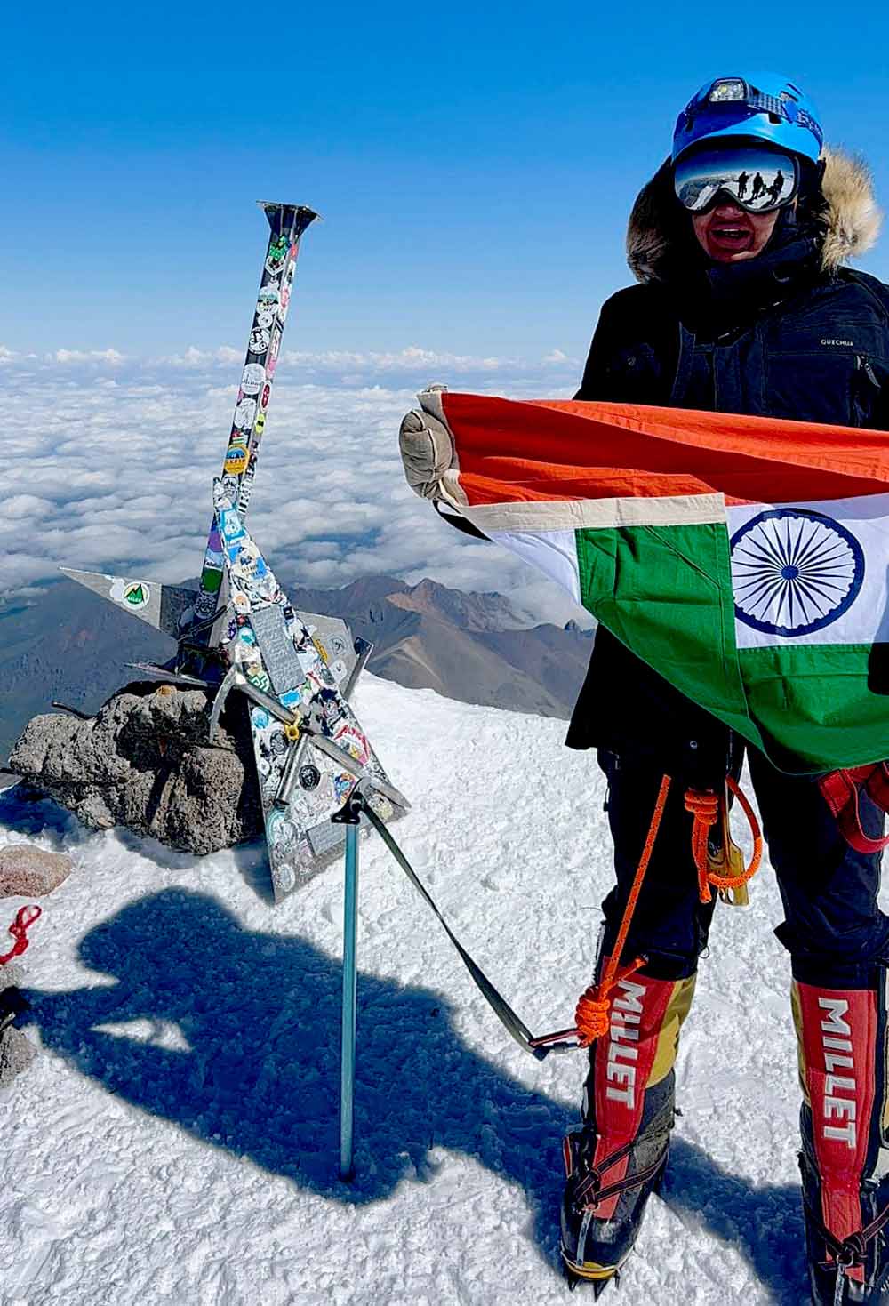 मुख्यमंत्री डॉ. मोहन यादव ने प्रदेश के अशोक नगर जिले की बेटी मुस्कान रघुवंशी द्वारा स्वतंत्रता दिवस पर यूरोप की सबसे ऊंची चोटी माउंट एलब्रुस पर भारत का तिरंगा फहराने पर बधाई और शुभकामनाएं दी हैं। मुख्यमंत्री डॉ. यादव ने कहा कि कु. मुस्कान ने माउंट एलब्रुस की (5,642 मीटर) पर -30 डिग्री तापमान के बीच तिरंगा फहरा कर मध्यप्रदेश सहित पूरे भारत का मस्तक शान से ऊंचा कर दिया है। मुख्यमंत्री डॉ. यादव ने कहा कि कु. मुस्कान बेटी भविष्य में भी सफलता के नित-नए कीर्तिमान रचें और देश का गौरव बढ़ाती रहें।
