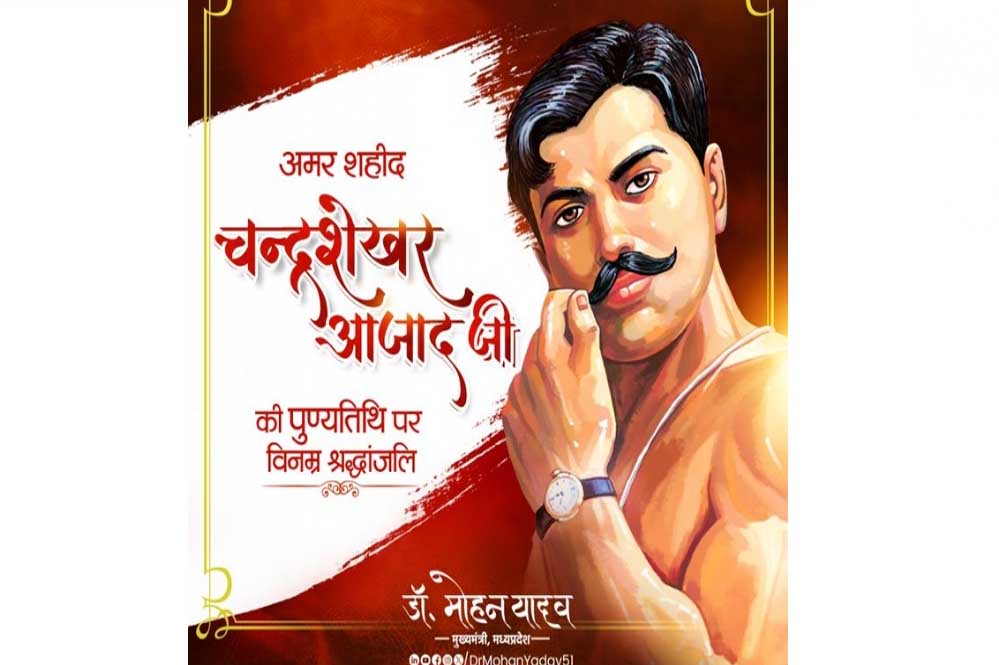 मुख्यमंत्री डॉ. मोहन यादव ने मध्यप्रदेश की माटी के गौरव, स्वतंत्रता संग्राम के नायक श्रद्धेय चंद्रशेखर आजाद की जयंती पर उन्हें कोटि-कोटि नमन कर श्रद्धांजलि अर्पित की है।