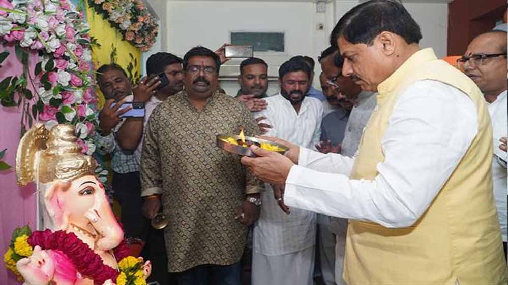 मुख्यमंत्री डॉ. मोहन यादव गुरूवार को उज्जैन प्रेस क्लब में भगवान गणेश जी की पूजा आरती में शामिल हुए। मुख्यमंत्री का प्रेस क्लब अध्यक्ष विशाल सिंह हाड़ा सहित पत्रकारों ने स्वागत किया। मुख्यमंत्री डॉ. यादव ने प्रेस क्लब के पत्रकारों से चर्चा कर उन्हें गणेश उत्सव की शुभकामनाएँ दी।