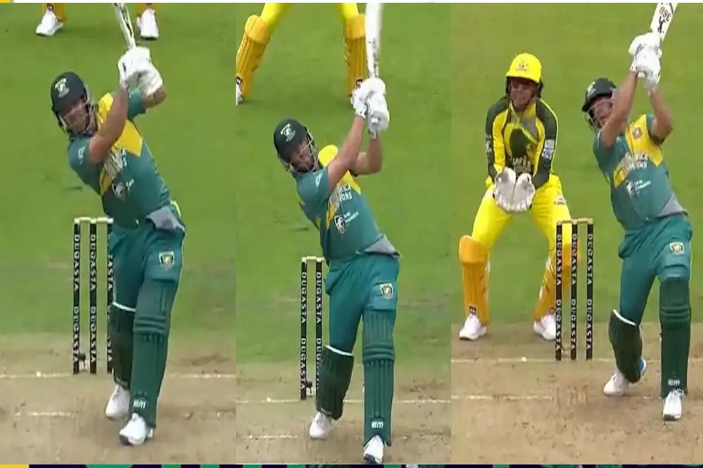 एबी डिविलियर्स, जो कि हैमस्ट्रिंग चोट के चलते सिर्फ बल्लेबाज़ी कर रहे थे, ने "इम्पैक्ट प्लेयर" के तौर पर उतरते हुए 47 गेंदों में अपना तीसरा शतक पूरा किया. उन्होंने अंत तक नाबाद 120 रन (60 गेंद, 12 चौके, 7 छक्के) की पारी खेली. उनके साथ जेपी डुमिनी ने भी शानदार बल्लेबाज़ी की और दोनों ने मिलकर 65 गेंदों में 125 रन की अटूट साझेदारी की. डुमिनी भी 28 गेंदों में 50 रन बनाकर नाबाद रहे.