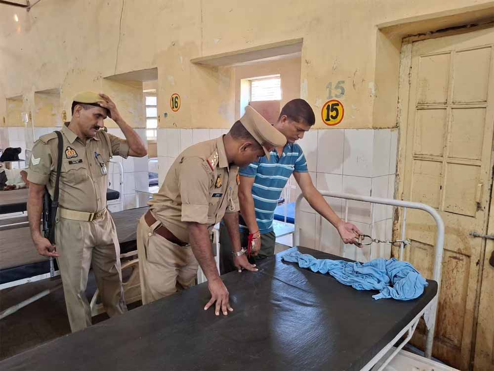यूपी के बदायूं में 12 अगस्त की रात एक दरोगा मनवीर सिंह की मां की गला रेतकर निर्मम हत्या करने का आरोपी धीरेंद्र सिंह पुलिस की आंखों में धूल झोंककर फरार हो गया है। बदायूं के इस्लामपुरनगर थाने की पुलिस ने शनिवार की देर रात उसे अलीपुर जंगल में एक एनकाउंटर के बाद गिरफ्तार किया था। उसके पैर में गोली लगी थी जिसके इलाज के लिए उसे जिला अस्पताल में भर्ती कराया गया था जहां से रविवार तड़के वह फरार हो गया। धीरेंद्र जिस बेड पर एडमिट था उसके सिरहाने पर एक हथकड़ी लगाई थी जिसमें संभवत: उसका एक हाथ लॉक किया गया होगा। इसके अलावा पहरा भी था। लेकिन इन सबको धता बताते हुए हत्यारोपी हिस्ट्रीशीटर अस्पताल से फरार हो गया। जाहिर है, उसके इस तरह फरार होने लेकर कई सवाल उठ रहे हैं।