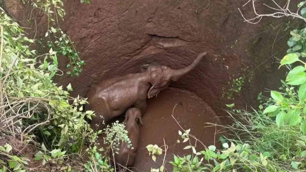 कुएं में फंसे दो हाथियों को बचाने के लिए वन विभाग ने शुरू किया रेस्क्यू ऑपरेशन