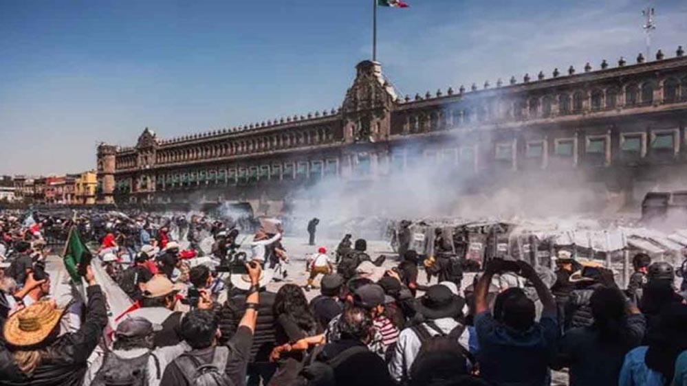 न्यूज एजेंसी के प्रत्यक्षदर्शियों के अनुसार, मेक्सिको सिटी में नकाबपोश प्रदर्शनकारियों के एक छोटे समूह ने राष्ट्रपति क्लाउडिया शीनबॉम आवास नेशनल पैलेस के चारों ओर लगी बाड़ को तोड़ दिया. इसके जवाब में दंगा पुलिस ने आंसू गैस के गोले दागे और प्रदर्शनकारियों को खदेड़ दिया.