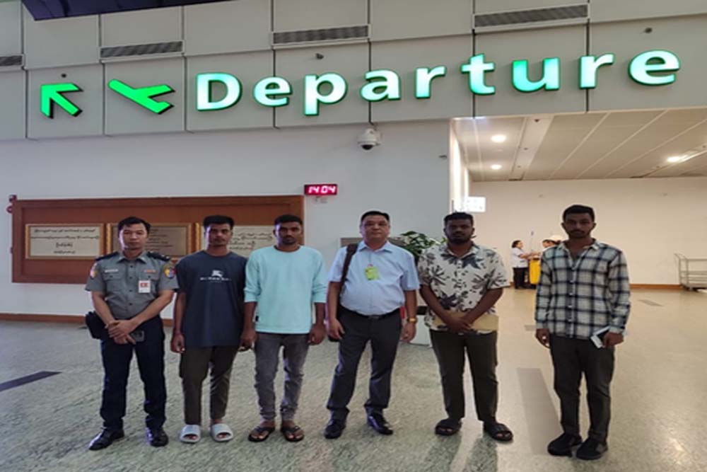 भारत सरकार म्यांमार-थाईलैंड बॉर्डर के म्यावाड्डी क्षेत्र में फंसे चार भारतीय नागरिकों की वापसी सुनिश्चित की है। यांगून स्थित भारतीय दूतावास ने शुक्रवार को यह जानकारी दी। चार भारतीय नागरिक म्यांमार-थाईलैंड सीमा के म्यावड्डी क्षेत्र में साइबर घोटाले के नेटवर्क में फंस गए थे। हाल ही में उन्हें म्यांमार के अधिकारियों ने रिहा कर दिया और ह्पा-आन से यांगून लाया गया।