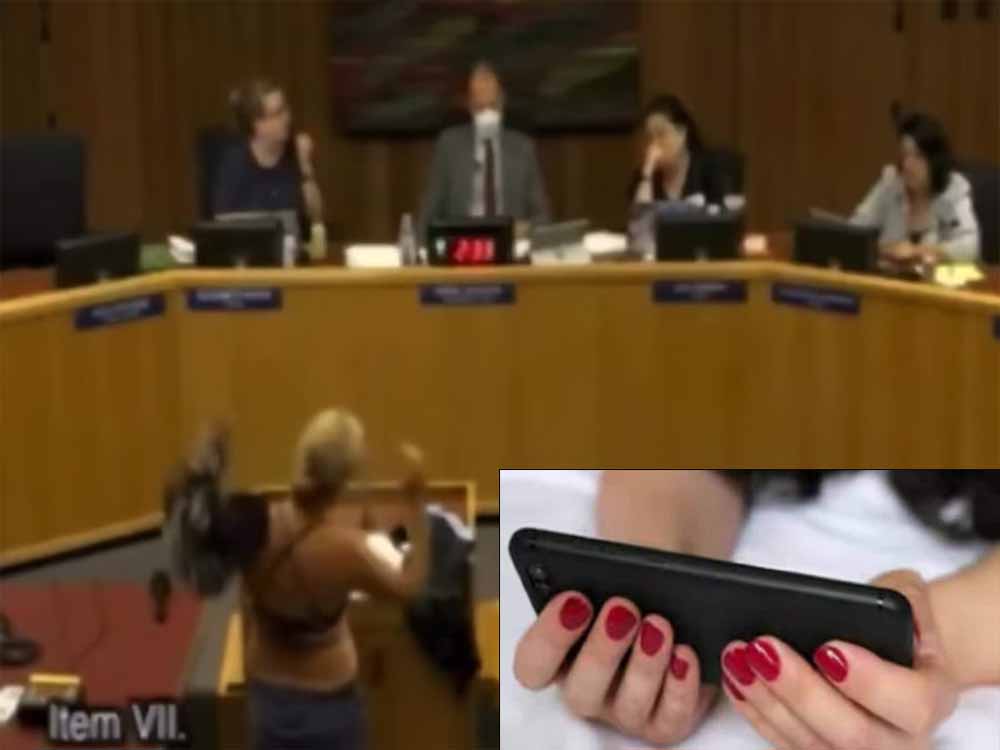 कपड़े उतारने हुए महिला कहने लगी, “मैं डेविस यूनिफाइड स्कूल डिस्ट्रिक्ट की एक अभिभावक हूं, और मैं आज यहां जूनियर हाई स्कूलों के लॉकर रूम के लिए आपकी नीतियों पर बात करने आई हूँ। एमर्सन, होम्स, हार्पर जूनियर हाई। अभी, हम अपने छात्रों को फिजिकल एजुकेशन की क्लासेस के लिए कपड़े उतारने के लिए कहते हैं। इसलिए मैं आपको बस यह बताने जा रही हूं कि जब मैं कपड़े उतारती हूं तो उन्हें कैसा लगता है।”