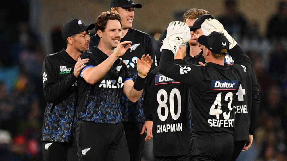 न्यूजीलैंड की टी20 टीमः मिचेल सैंटनर (कप्तान), माइकल ब्रेसवेल, मार्क चैपमैन, डेवोन कॉनवे (विकेटकीपर), जैकब डफी, ज़ैक फॉल्क्स, मैट हेनरी, काइल जैमीसन, बेवोन जैकब्स, डैरिल मिचेल, जेम्स नीशम, ग्लेन फिलिप्स, रचिन रविंद्र, टिम रॉबिन्सन, ईश सोढ़ी.