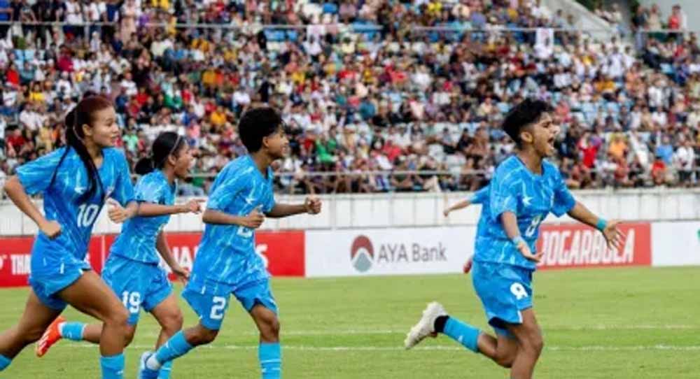 भारत ने रविवार को एएफसी अंडर-20 महिला एशियाई कप 2026 क्वालीफायर में ग्रुप-डी के अपने तीसरे और आखिरी मैच में मेजबान म्यांमार को 1-0 से हराकर इतिहास रच दिया। इसी के साथ भारत ने ग्रुप में शीर्ष स्थान हासिल करते हुए थाईलैंड में होने वाले एएफसी अंडर-20 महिला एशियाई कप 2026 के लिए क्वालीफाई कर लिया है।