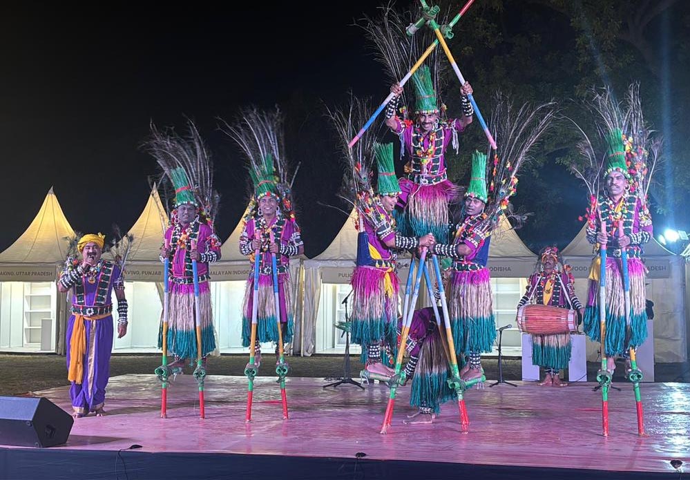 गेड़ी नृत्य दल ने अपने रोमांचक प्रदर्शन से अंतर्राष्ट्रीय दर्शकों को रोमांचित कर दिया