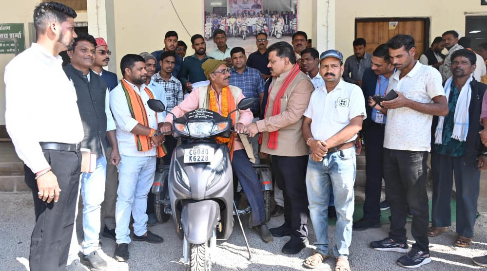 रायपुर : दिव्यांग नेमी सिंह को उपमुख्यमंत्री शर्मा ने प्रदान की पेट्रोल चलित स्कूटी