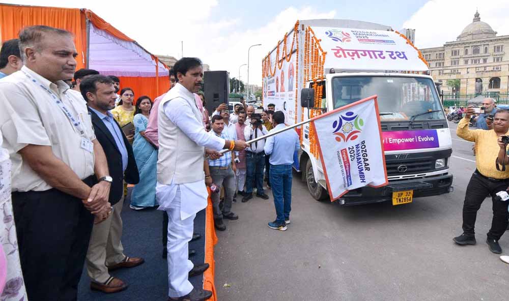 श्रम एवं सेवायोजन मंत्री अनिल राजभर ने सोमवार को विधान सभा, लखनऊ से रोजगार महाकुंभ 2025 हेतु महाकुंभ अभियान का शुभारम्भ किया। इस कार्यक्रम में मंत्री जी ने हरी झंडी दिखाकर रोजगार रथ को प्रदेश के जनपदों में प्रचार-प्रसार के लिए रवाना किया। इस अवसर पर उन्होंने कहा कि शासन की मंशा है कि हर युवा के हाथों रोजगार उपलब्ध हो। इसी के दृष्टिगत श्रम एवं सेवायोजन विभाग द्वारा बीसीएस कंसल्टिंग प्राइवेट लिमिटेड, लखनऊ और द इकोनॉमिक टाइम्स ऑफ इंडिया के सहयोग से 26 से 28 अगस्त 2025 तक राजधानी लखनऊ के इंदिरा गांधी प्रतिष्ठान में रोजगार महाकुंभ 2025 का आयोजन किया जा रहा है। उन्होंने कहा कि रोजगार रथ का उद्देश्य अधिक से अधिक युवाओं को इस महाकुंभ में प्रतिभाग के लिए प्रेरित करना और उन्हें राष्ट्रीय एवं अंतर्राष्ट्रीय स्तर पर उपलब्ध अवसरों से जोड़ना है। उन्होंने कहा कि रोजगार महाकुंभ 2025 के अंतर्गत 50 हजार युवाओं को रोजगार उपलब्ध कराया जाएगा।