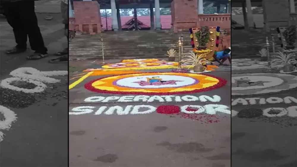 केरल में मंदिर में फूलों की सजावट पर RSS का झंडा और ‘ऑपरेशन सिंदूर’ (Operation Sindoor) लिखने से बवाल मच गया। कोल्लम जिले में पार्थसारथी मंदिर के बाहर बने पूक्कलम में आरएसएस का झंडा और ‘ऑपरेशन सिंदूर’ लिखे जाने पर सस्तमकोट्टा पुलिस ने केस दर्ज किया है। केरल पुलिस ने आरएसएस और बीजेपी कार्यकर्ताओं के खिलाफ केस दर्ज किया है।