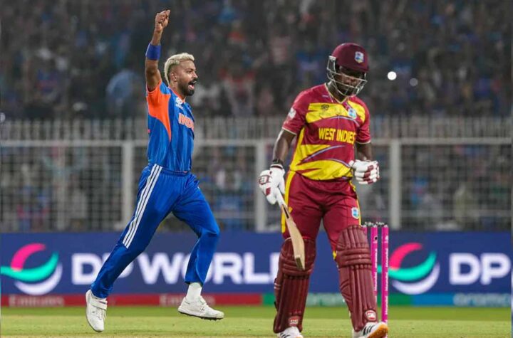 भारत ने रविवार को टी20 विश्व कप 2026 के सुपर-8 मुकाबले में 5 विकेट से हराया। इसके साथ ही भारत ने सेमीफाइनल में जगह बना ली है।  वेस्टइंडीज ने भारत के खिलाफ टी20 विश्व कप 2026 के सुपर-8 के आखिरी मुकाबले में पहले बल्लेबाजी करते हुए 20 ओवर में 4 विकेट खोकर 195 रन बनाए हैं। पहले बल्लेबाजी के लिए भेजे जाने पर वेस्टइंडीज के लिए रोस्टन चेस (40) और शाई होप (32) ने 68 रन की पहले विकेट की साझेदारी की। भारत के लिए जसप्रीत बुमराह ने चार ओवर में 36 रन देकर दो विकेट लिए। 196 रनों के लक्ष्य का पीछा करने उतरी भारतीय टीम को अभिषेक शर्मा और संजू सैमसन ने अच्छी शुरुआत दिलाई। दोनों के बीच पहले विकेट के लिए 29 रन की साझेदारी हुई। अभिषेक 10 रन ही बना सके। ईशान किशन 6 गेंद में 10 रन बनाकर आउट हुए। कप्तान सूर्यकुमार यादव ने 16 गेंद में 18 रन बनाए। तिलक वर्मा 15 गेंद में 27 रन बनाकर पवेलियन लौट गए। हार्दिक पांड्या ने 14 गेंद में 17 रन बनाकर आउट हुए।