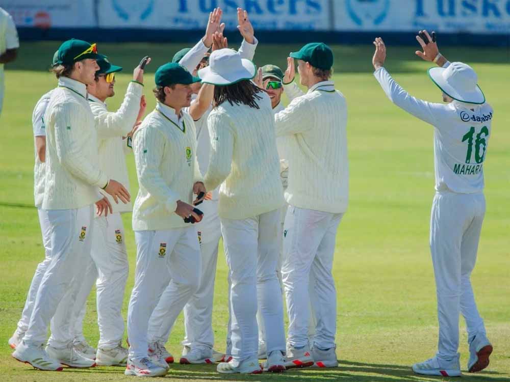 दक्षिण अफ्रीका ने जिम्बाब्वे के खिलाफ दो टेस्ट मैचों की सीरीज में 1-0 की बढ़त हासिल कर ली है। दक्षिण अफ्रीका ने मंगलवार को पहले टेस्ट में मेजबान जिम्बाब्वे को 'जमींदोज' कर दिया। दक्षिण अफ्रीका ने मैच के चौथे दिन बुलावायो के क्वींस स्पोर्ट्स क्लब में 328 रनों से धमाकेदार जीत हासिल की। 537 रनों के लक्ष्य पीछा करते हुए जिम्बाब्वे की टीम 208 पर ऑलआउट हो गई। जिम्बाब्वे ने दिन का खेल 32/3 के स्कोर से शुरू किया और 176 रन ही जोड़े। दक्षिण अफ्रीका के 30 वर्षीय ऑलराउंडर कॉर्बिन बॉश ने 'घातक पंजा' मारा। उन्होंने जिम्बाब्वे की दूसरी पारी में 12 ओवर में 43 रन देकर पांच विकेट चटकाए। बॉश ने मैच में शतक भी जमाया था। वह पिछले 23 वर्षों में एक ही टेस्ट में शतक बनाने और पांच विकेट लेने वाले दक्षिण अफ्रीका के पहले क्रिकेटर हैं।