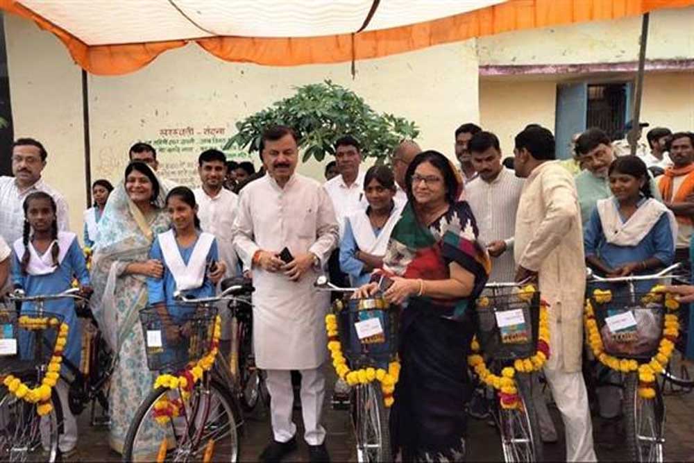 स्कूल शिक्षा मंत्री ने विद्यार्थियों को वितरित की नि:शुल्क साईकिल