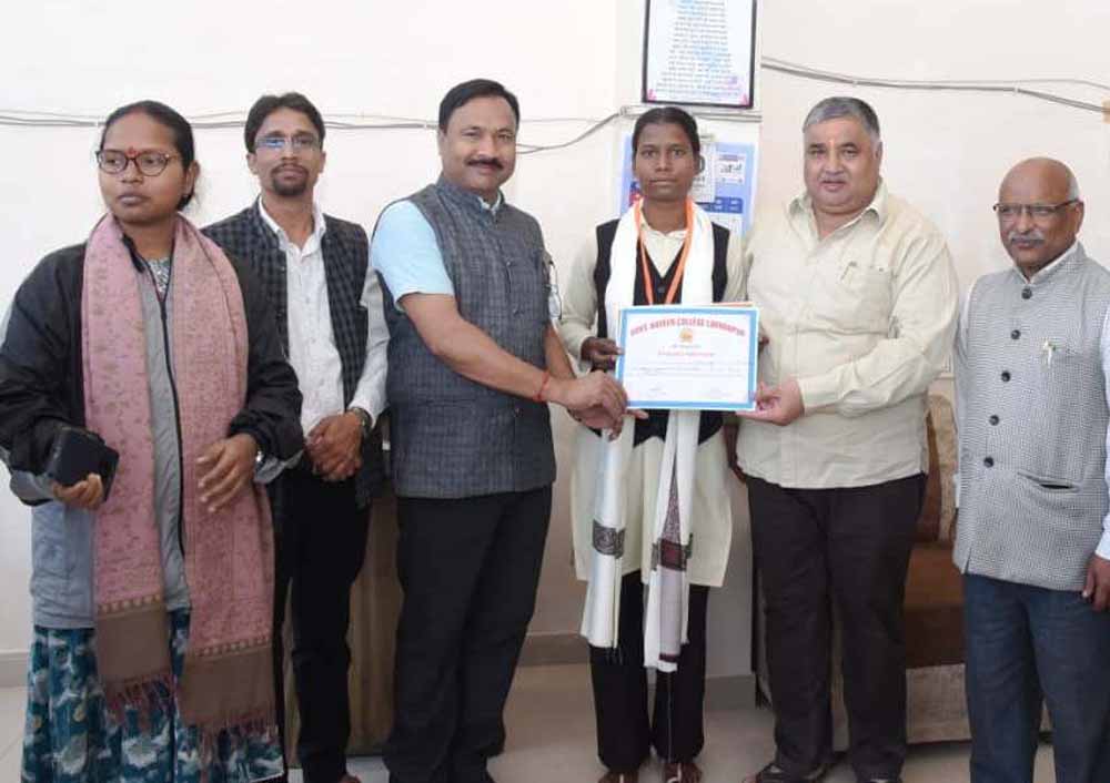 पर्यटन मंत्री  राजेश अग्रवाल ने हैमर थ्रो में राज्य स्तर पर तृतीय स्थान प्राप्त करने वाली छात्रा सुधा सिंह को किया सम्मानित