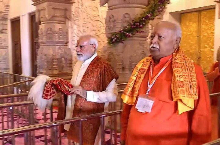 अयोध्या प्रधानमंत्री नरेंद्र मोदी ने अयोध्या के भव्य राम मंदिर पर धर्मध्वजा फहराई। इस मौके पर आरएसएस चीफ मोहन भागवत...