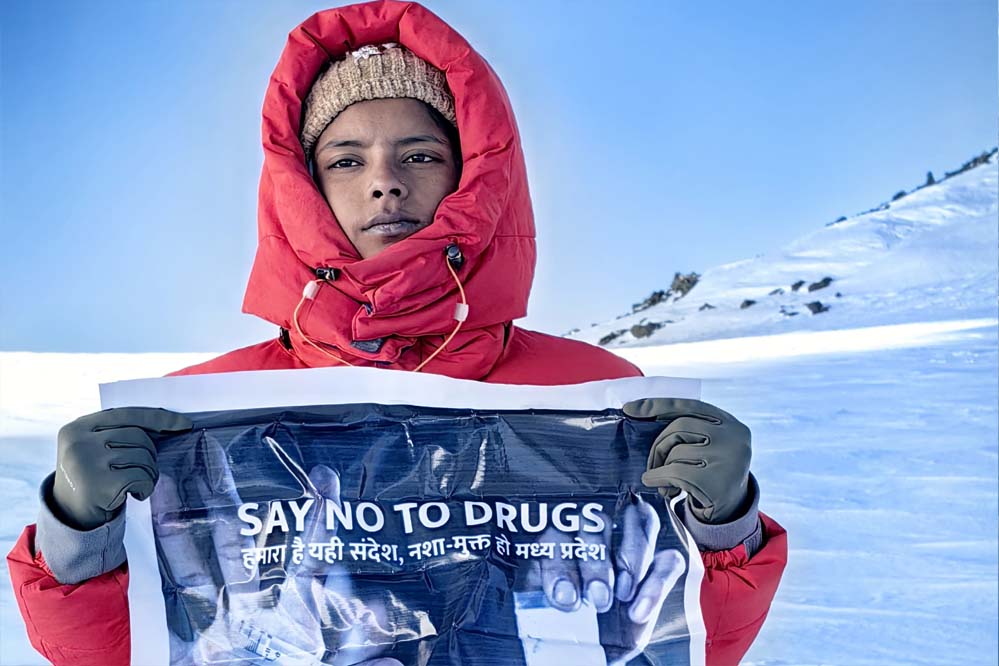 -20 डिग्री तापमान में पर्वत चढ़ती अंजना।