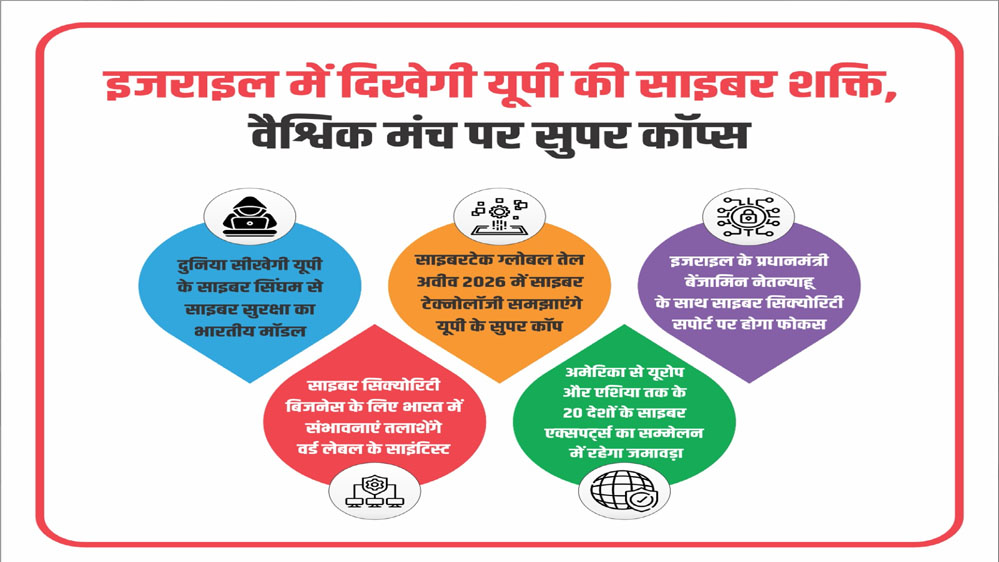 दुनिया के सबसे प्रतिष्ठित साइबर सुरक्षा मंचों में शुमार 'साइबरटेक ग्लोबल तेल अवीव-2026' में इस बार भारत और विशेष तौर पर उत्तर प्रदेश की साइबर ताकत पूरी दुनिया के सामने होगी। 26 से 28 जनवरी 2026 तक तेल अवीव, इज़राइल में आयोजित होने जा रहे इस अंतरराष्ट्रीय सम्मेलन में यूपी के साइबर सिंघम वैश्विक मंच पर भारत की साइबर सुरक्षा क्षमता, तकनीक व अनुभव साझा करेंगे।