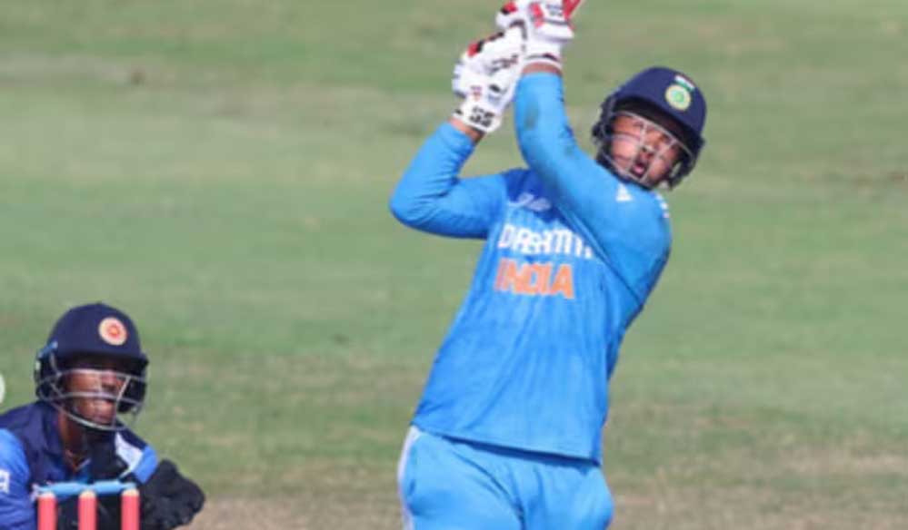 इंग्लैंड अंडर 19 टीम के खिलाफ खेलने उतरे वैभव सूर्यवंशी ने 174 रन के लक्ष्य का पीछा करते हुए ताबड़तोड़ शुरुआत की. कप्तान और ओपनिंग पार्टनर आयुष महात्रे के साथ मिलकर पहले विकेट के लिए 71 रन जोड़े. वैभव ने महज 19 बॉल खेले और इसमें 252.63 की स्ट्राइक रेट से 48 रन बना डाले. इस युवा ने अपनी पारी में चौके से ज्यादा छक्के मारे. 5 छक्के और 3 चौके लगाते हुए अंग्रेज गेंदबाजों को उन्होंने कूटा.