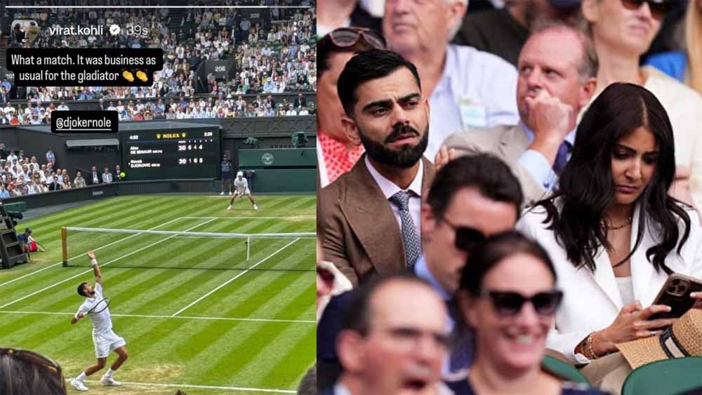 विराट कोहली अपनी पत्नी अनुष्का शर्मा के साथ विंबलडन में पहुंचे थे। विराट कोहली ने नोवाक जोकोविच की एक तस्वीर भी इंस्टाग्राम पर शेयर की और इस दिग्गज की सराहना की। नोवाक जोकोविच का भी रिप्लाई इस पोस्ट पर आया। हालांकि, बात इतनी सी नहीं है। कुछ फैंस इस बात से नाराज हैं कि विराट कोहली ने 36 साल की उम्र में रिटायरमेंट (दो फॉर्मेट से) ले लिया है, जबकि 38 साल के नोवाक जोकोविच अभी भी अपना 100 फीसदी दे रहे हैं। ऐसे में फैंस का कहना है कि 36 साल के क्रिकेटर रिटायर होकर 38 साल के खिलाड़ी को सपोर्ट कर रहे हैं। ये दुखद है।