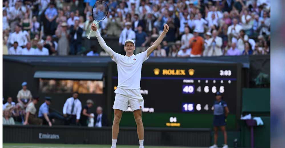 दरअसल, सिनर (Jannik Sinner) विंबलडन का खिताब जीतने वाले इटली के पहले खिलाड़ी बने। 148 सालों के विंबलडन इतिहास में किसी भी इतालवी खिलाड़ी को पुरुष सिंग्लस चैंपियन का ताज आजतक नहीं पहनते देखा गया। 1877 में पहली बार आयोजित इस टूर्नामेंट में सिनर चैंपियन बनने वाले पहले इतालवी खिलाड़ी बने।